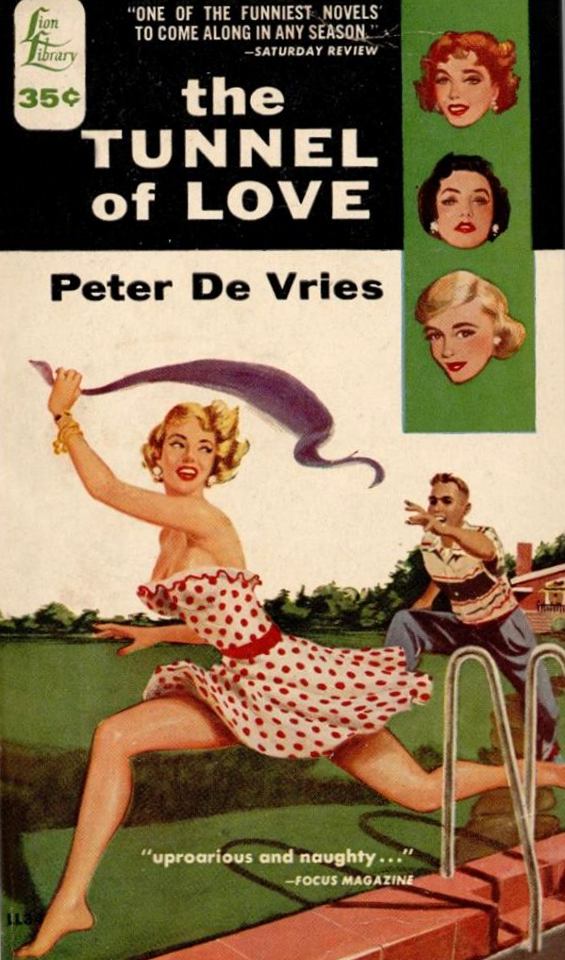 The Tunnel of Love, by Peter De Vries (Lion Library, 1953). Cover illustration by Al Werner, who I presume also supplied the delightful backside artwork.